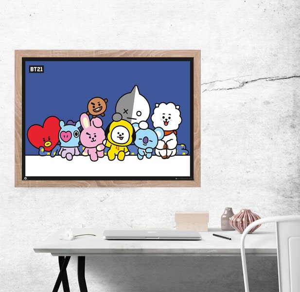 Plakat BT21 o wymiarach 91,5x61cm idealny na powieszenia na ścianie czy oprawienia w ramę! Papier kredowy półbłyszczący gwarantuje żywe i trwałe kolory 🙂