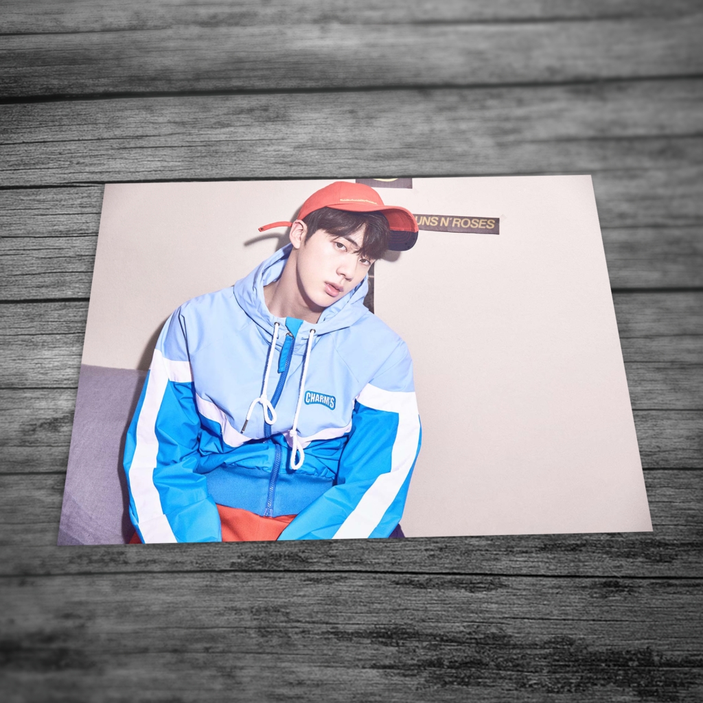Zdjęcie z nadrukiem Jin z kpopowego zespołu Bangtan Boys. Wykonane na papierze fotograficznym o wymiarach 10x15cm. Do wyboru w dwóch wersjach wykończeniowych: macie lub błysku. Idealne do ozdobienia pokoju, antyramy czy jako pocztówka. Tylna strona zdjęcia nie jest zadrukowana, dlatego możesz na niej napisać ulubione teksty piosenek, motta, ozdobić rysunkiem czy napisać życzenia okolicznościowe.