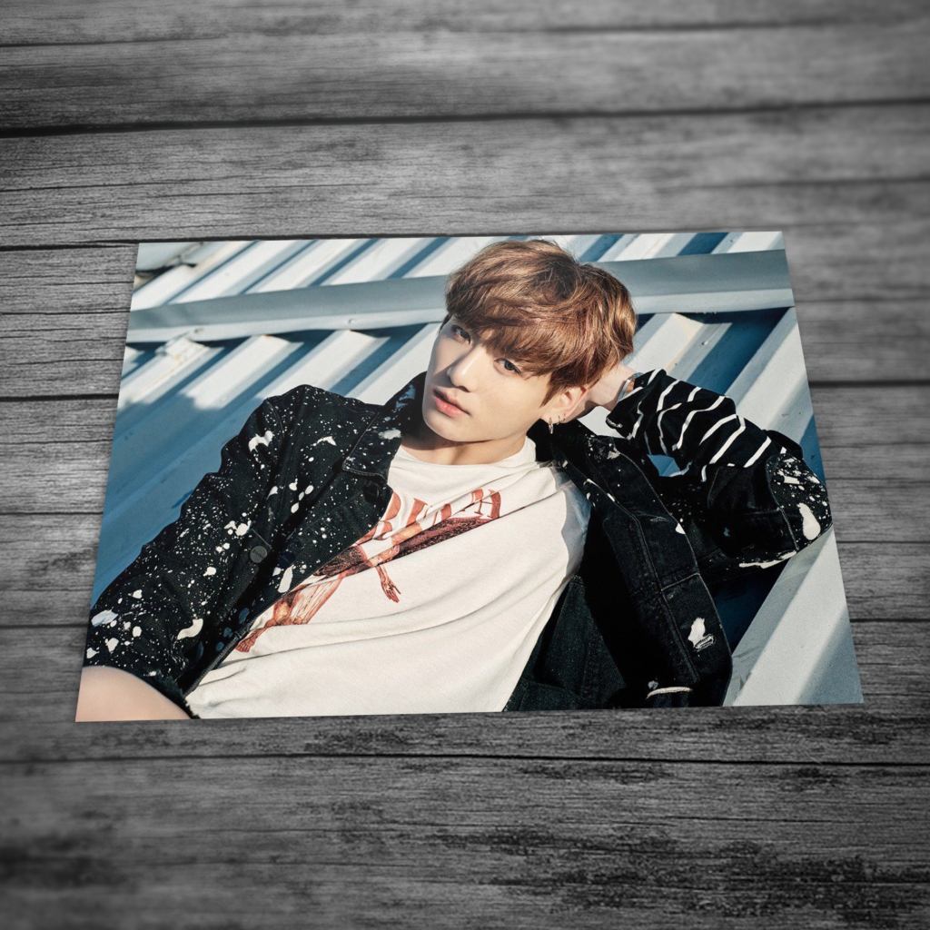 Zdjęcie z nadrukiem Jungkook z kpopowego zespołu Bangtan Boys. Wykonane na papierze fotograficznym o wymiarach 10x15cm. Do wyboru w dwóch wersjach wykończeniowych: macie lub błysku. Idealne do ozdobienia pokoju, antyramy czy jako pocztówka. Tylna strona zdjęcia nie jest zadrukowana, dlatego możesz na niej napisać ulubione teksty piosenek, motta, ozdobić rysunkiem czy napisać życzenia okolicznościowe.