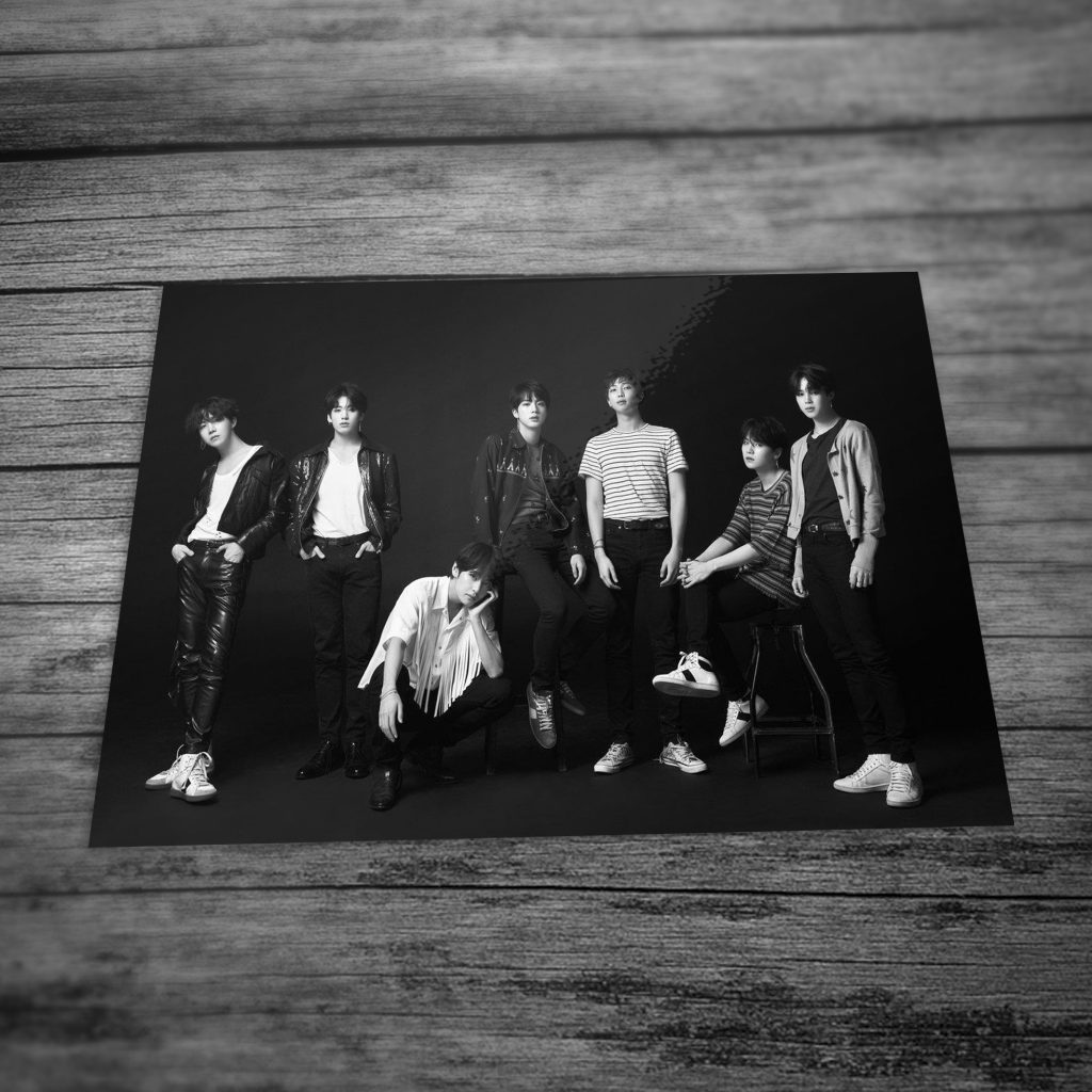 Zdjęcie z nadrukiem kpopowego zespołu Bangtan Boys. Wykonane na papierze fotograficznym o wymiarach 10x15cm. Do wyboru w dwóch wersjach wykończeniowych: macie lub błysku. Idealne do ozdobienia pokoju, antyramy czy jako pocztówka. Tylna strona zdjęcia nie jest zadrukowana, dlatego możesz na niej napisać ulubione teksty piosenek, motta, ozdobić rysunkiem czy napisać życzenia okolicznościowe.