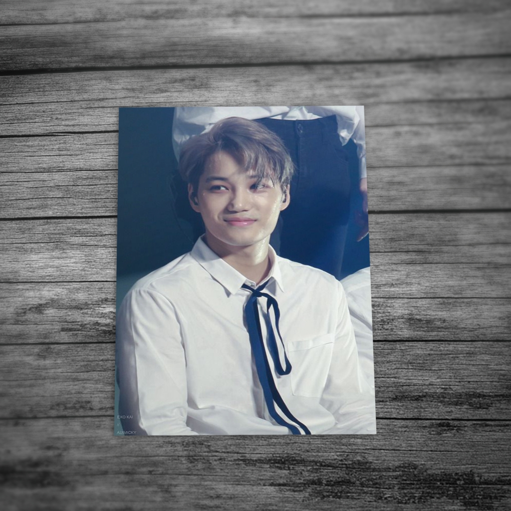 Zdjęcie z nadrukiem KAI z kpopowego zespołu EXO. Wykonane na papierze fotograficznym o wymiarach 10x15cm. Do wyboru w dwóch wersjach wykończeniowych: macie lub błysku. Idealne do ozdobienia pokoju, antyramy czy jako pocztówka. Tylna strona zdjęcia nie jest zadrukowana, dlatego możesz na niej napisać ulubione teksty piosenek, motta, ozdobić rysunkiem czy napisać życzenia okolicznościowe.