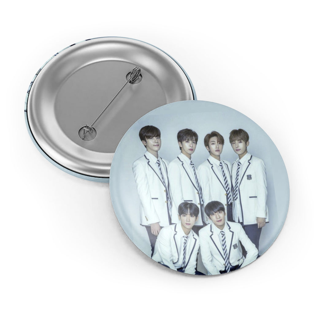 Przypinka kpop o rozmiarze 5,8cm z nadrukiem kpopowego zespołu Snuper