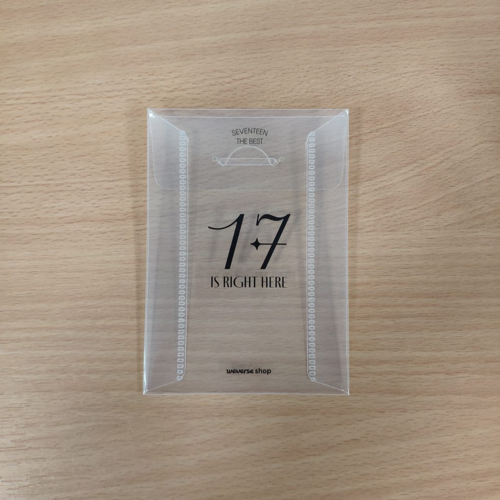 SEVENTEEN BEST ALBUM 17 IS RIGHT HERE WEVERSE POB (Mini pocket file) – limitowany dodatek od Weverse dodawany w preorderze do zakupu 13szt. albumu SEVENTEEN BEST ALBUM 17 IS RIGHT HERE (DEAR ver.). Kupujesz 1szt. mini pocket file.