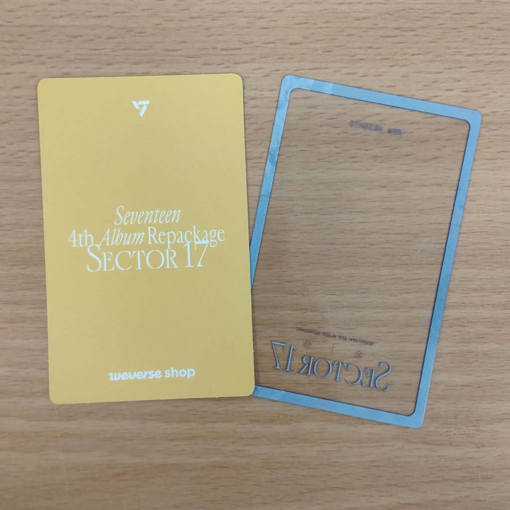 Dodatek od Weverse dodawany w preorderze do zakupu SEVENTEEN SECTOR 17. Kupujesz 1szt. photocard oraz frame cover w prezentowanym na zdjęciu wzorze.