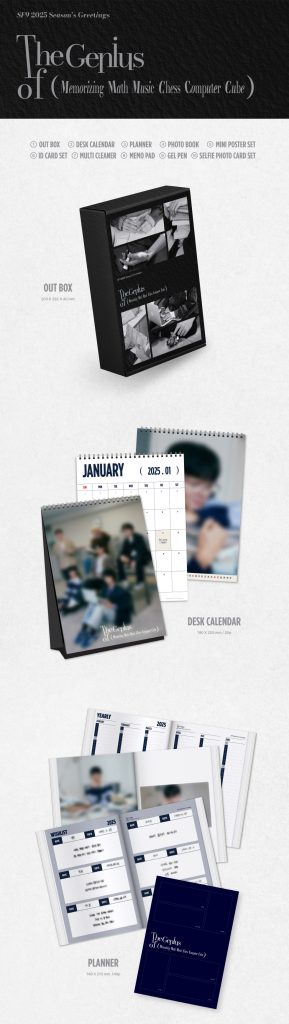 Oficjalny produkt SF9 2025 SEASON’S GREETINGS The Genius of. Produkt będzie miał swoją premierę w Korei 14 stycznia 2025r.