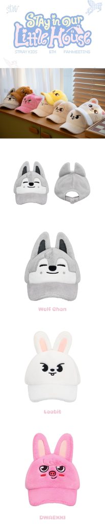 Oficjalny produkt Stray Kids 6TH FANMEETING STAY in Our Little House SKZOO PLUSH CAP w jednej z ośmiu wersji. Produkt będzie miał swoją premierę w Korei 1 lipca 2026r. Kupujesz 1szt. SKZOO PLUSH CAP z wybraną postacią SKZOO.