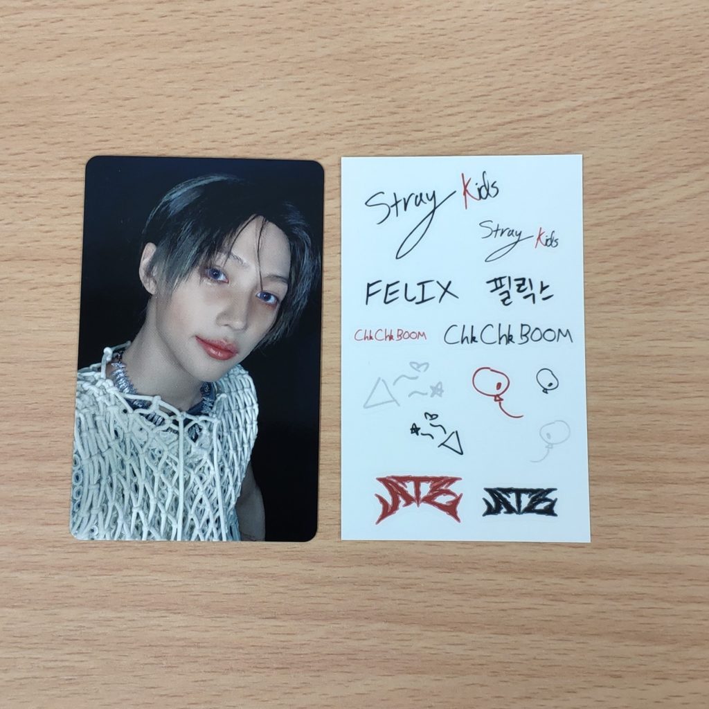 Stray Kids ATE (PLATFORM ALBUM_NEMO VER.) JYP POB FELIX – dodatek dodawany przez JYP SHOP w preorderze do zakupu albumu Stray Kids ATE w wersji PLATFORM ALBUM_NEMO. Kupujesz 1szt. selfie photo card + 1szt. handwriting decoration sticker z członkiem zespołu: FELIX.