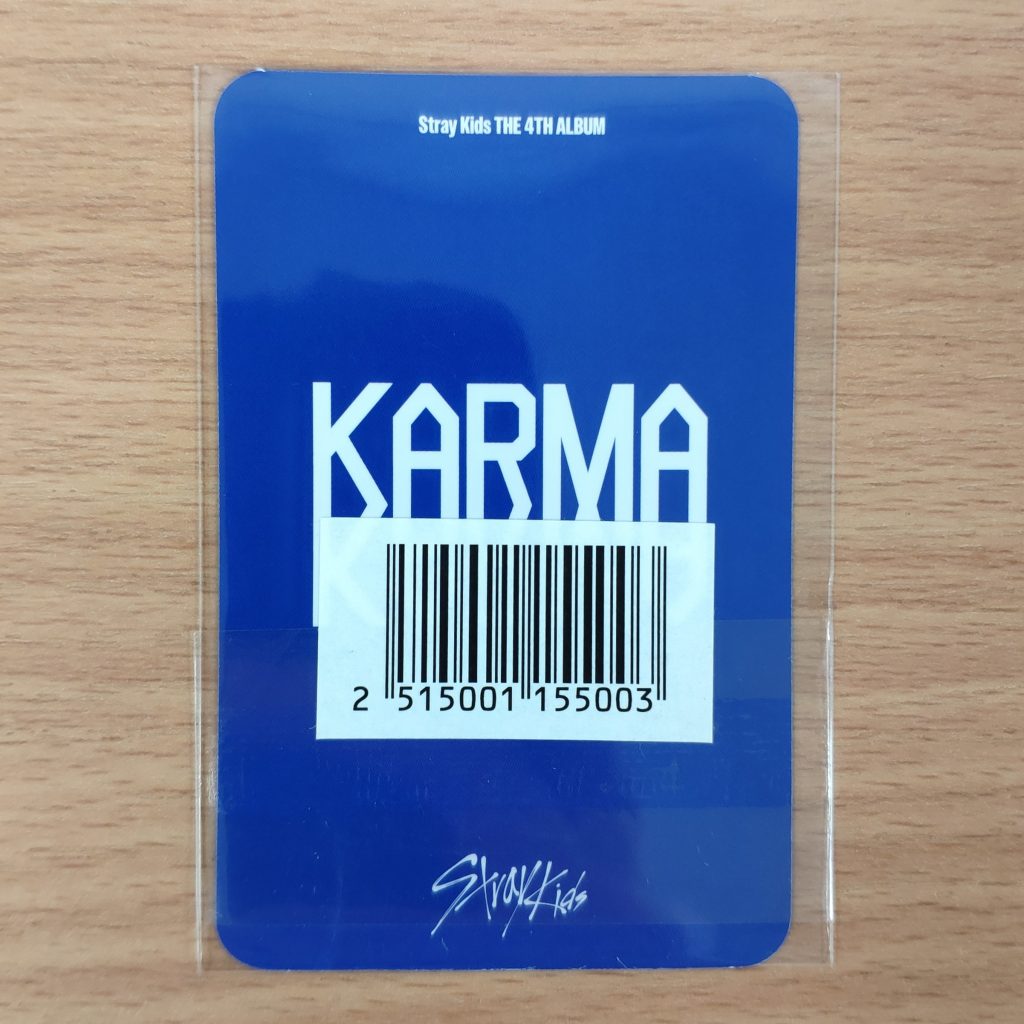 Dodatek dodawany przez YES24 w preorderze do zakupu albumu Stray Kids KARMA. Kupujesz 1szt. Photocard w prezentowanym na zdjęciu wzorze.