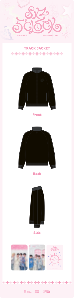 Oficjalny produkt STRAY KIDS SKZ 5’CLOCK TRACK JACKET. Produkt będzie miał swoją premierę w Korei 9 maja 2025r. W zestawie 1szt. track jacket oraz 2szt. unit photocard.