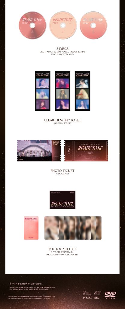 Oficjalny produkt TWICE 5TH WORLD TOUR READY TO BE IN SEOUL DVD. Produkt miał swoją premierę w Korei 31 lipca 2024r. Zawartość prezentowana na zdjęciach.