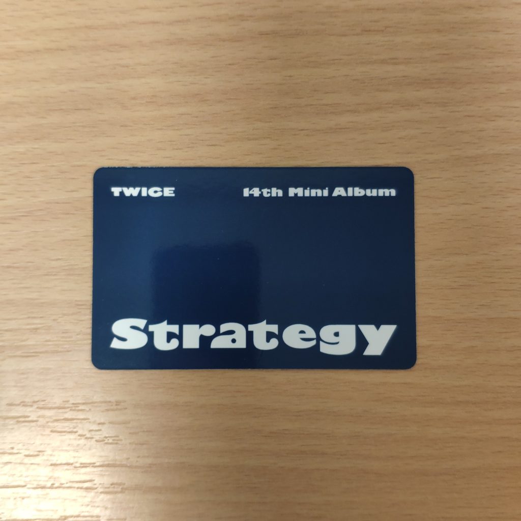 TWICE STRATEGY JYP Shop POB PHOTOCARD GROUP – dodatek od JYP Shop dodawany w preorderze do zakupu SETu albumów TWICE STRATEGY. Kupujesz 1szt. photocard w prezentowanym na zdjęciu wzorze.