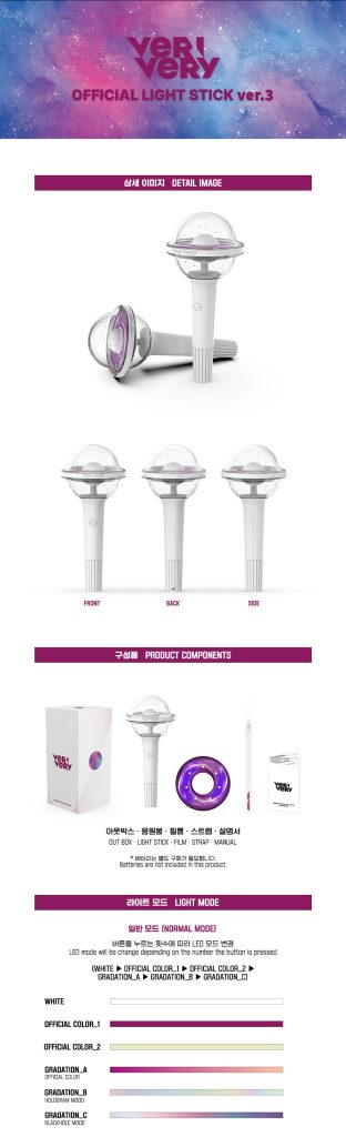 Oficjalny light stick VERIVERY Official Light Stick Ver.3. W zestawie dołączona jest smycz do przyczepienia do lightsticka.